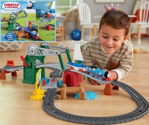 Young conductors can help Skiff the railboat come ashore for a tune-up with the Thomas & Friends Bridge Lift Thomas & Skiff train set from Fisher-Price! This motorized train and track set features a battery-powered Thomas engine, a push-along Skiff, and a kid-controlled bridge that lifts up at the push of a lever. Kids can push Skiff along the track or attach him to Thomas to send the duo racing around Sodor! Includes over 3 ½ feet of track for kids to build out their railway. Kids can use the track switch to choose which direction the battery-powered, motorized Thomas engine races along. Get the deal at Amazon here for only $19.98: Thomas & Friends Bridge Lift & Skiff Train Set